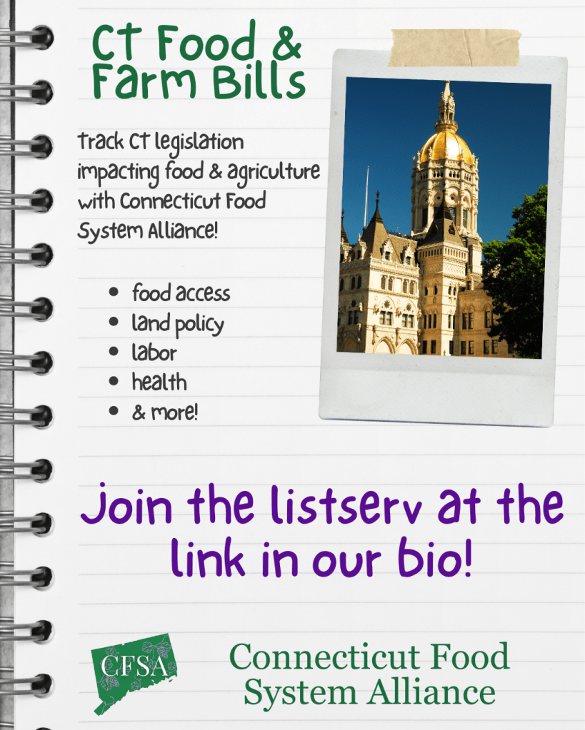 - CT food system bills and action alerts to grow a just, sustainable future