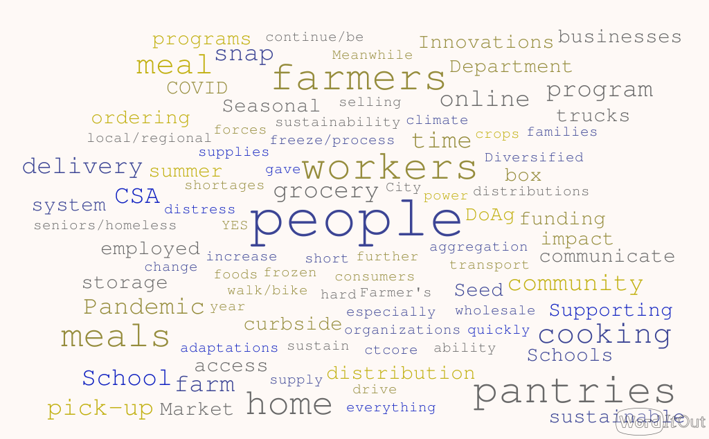 During breakout sessions, groups discussed successful and not-so-successful food supply chain adaptations, as well as pivots they would like to see continue post-COVID. Groups also discussed the obstacles people faced while trying to pivot a business model or program.