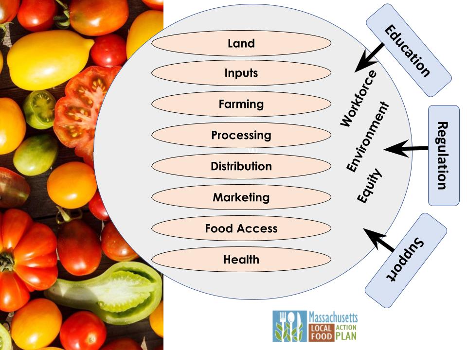 The local food count data collection is part of a greater effort to reach a regional goal of producing and consuming 30% of New Englandโs food needs in the region by 2030. In 2023, the New England Food System Planners Partnership, a collaboration between seven state-level organizations, six-state agricultural, economic and environmental department representatives and Food Solutions New England (FSNE), released A Regional Approach to Food System Resilience. The research explores the opportunities and needs along the food supply chain in New England, and highlights the land, sea, and labor needs of the region, consumer purchase metrics, distribution trends, and population projections that will impact the regionโs ability to feed itself in the coming years.